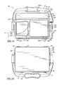Closure panel344 may be generally rectangular, and may occupy a majority of the area ofproximal portion314.Closure panel344 may be hingedly attached toproximal portion314. The hinge attachment may be at, or adjacent to the rear margin oflid312.Closure panel344 may be centered along the rear margin.Closure panel344 may open towardhard fitting320, i.e., the free edge ofclosure panel344 is closest toward, or adjacent to, or next to, the rearward margin ofhard fitting320.