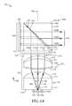 Also for the purposes of the description provided herein, the term “facing” refers to one element disposed so that a perpendicular line from the surface of the element follows an optical path that is also perpendicular to the other element. One element facing another element can include the elements disposed adjacent each other. One element facing another element further includes the elements separated by optics so that a light ray perpendicular to one element is also perpendicular to the other element.