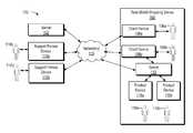 InFIG. 1, support persons118a-bare located within the real-world shopping venue and thus can provide in-person support to customers106a-b.Support persons118c-dare located remote from the real-world shopping venue and thus provide support using support person devices110a-bto communicate throughnetwork115 with customers106a-busing client devices108a-b. As non-limiting examples, supportpersons118c-dprovide live support to customers106a-busing live chat, text messages, e-mail messages, audio messages, and/or phone calls.