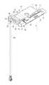 Theantenna holding part21 has a substantially rectangular parallelepiped shape with staking bosses E1, E2, and E3 provided on a back side thereof. Theantenna holding part21 has, near a part connected to thecable holding part25, aconstriction22 smaller in width than other parts of theantenna holding part21. In theantenna holding part21, the side provided with theconstriction22 is referred to as inner side, and the side opposite thereto is referred to as the outer side; the inner side and the outer side of thecable holding part25 are also defined in a similar manner.