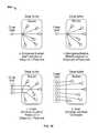 FIG. 39 shows severalpossible architectures520 where the charger circuit comprises sub circuits or units whereby each sub-unit is responsible for powering or charging and/or communicating with one power receiver. The arrows inFIG. 39 show the direction of the power transfer to the device to be charged. However, the direction for the communication and/or control can be in the same direction, the opposite direction, or bidirectional or no communication and/or control between the charger and receiver may exist. In addition, the communication and/or control can be through the coils, by load modulation, separate communication coil or coils, RF or optical path, etc. or a combination of such methods. As described above, existing protocols such as Bluetooth, WiFi, NFC, RFID, Zigbee, WiGig, Wireless USB, or protocols such as that provided by the Wireless Power Consortium (WPC), developed for wireless power, or a combination of the above and/or new protocols or proprietary communication mechanisms can be used. As described above, it is also possible to develop systems whereby there is no communication between the charger and receiver and any regulation or end of charge termination and/or shut off due to unexpected events occurs in the receiver.