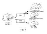 FIG. 2 is a diagram showing the procedure used to generate the experimental animals. In particular, mice were separated into three groups, animals that underwent surgical gastric bypass and maintained on high fat diet (RYGB), animals that underwent sham surgery and maintained on high fat diet (SHAM), and animals that underwent sham surgery and were calorically restricted to weigh the same as the RYGB animals, i.e., weight matched (WMS);