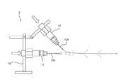 Thesupport member14 is a device for holding theejector nozzle10 and theair nozzle12 so as to be capable of adjusting a positional relationship therebetween. In the first embodiment, theejector nozzle10 is desirably disposed to be spaced apart from the high-speed and high-temperature air12A ejected from theair nozzle12, by a given distance. This is because, if the high-speed and high-temperature air12A having a high pressure is directed to directly hit against theliquid polymer10A, it can break theliquid polymer10A into particles, precluding production of nanofibers.