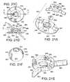 Theball820 is a preferably hollow plastic ball and is provided with oppositecircular openings851,852 sized to closely receive the needle shaft of the surgical assembly510, and a plurality ofslits853 which extend about 120.degree. from theopening852 in the direction of the axis defined byopenings851,852. With theslits853, the ball is compressible such that if a circumferential force is applied to the ball, thelobes854 formed between theslits853 will move toward each other. As seen best inFIGS. 21A-21D, theball820 is oriented in thering844 so that theslits853 extend downward.
