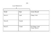 Turning toFIG. 7, an exemplary embodiment of anincentive plan216 is shown. Theincentive plan216 can be based on thelocal schedule214. For a selected state in thelocal schedule214, an action of theconsumer device400 can result in an appropriate reward. Stated somewhat differently, theDR Locational Application200 can assign the appropriate reward to theconsumer device400 for the action. The reward can include a positive reward, such as a credit, and/or a negative reward, such as a demerit, that, in some instances, can cancel out certain positive reward. For example, when theconsumer device400 takes an action that is encouraged according to the state at a given moment, the action can result in a positive reward.