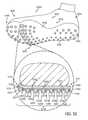 FIGS. 24 and 25 depict a schematic side cross-sectional view of a portion ofsole system2310. As seen inFIGS. 24-25, forces applied to protrudingmembers2352 may cause at least some protrudingmembers2352 to be retracted withinsole member2320. In some embodiments, the amount that protrudingmembers2352 may retract intosole member2320 may depend on the default (i.e., non-stressed) separation2380 (seeFIG. 24) between plurality of connectingportions2360 anddistal surface2322 ofsole member2320. Additional factors that may affect the degree of retraction include, but are not limited to: the sizes of the holes, elasticity of connecting portions and/or protruding members as well as possibly other factors.