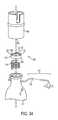 From the fully installed position, the cap994 (and base/reservoir/cap unit) may be removed from the reservoir receptacle by manually rotating thecap994 about the axis A in a direction to cause thetabs991 to follow thechannels997 toward the open end of thechannels997, while simultaneously pulling thecap994 outward from thereservoir receptacle32. When thetabs991 reach the open ends of thechannels997, thecap994 is further manually rotated about the axis A to align thetabs991 with theslots990c. Once thetabs991 are aligned with theslots990c, further pulling of thecap994 outward from the reservoir receptacle332 causes the cap994 (and base/reservoir/cap unit) to be withdrawn from the reservoir receptacle332, through the opening990ain theupper ring member990.