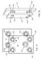 FIG. 13A-FIG. 13D depict various exemplary mechanisms that can be used with field emission structures and exemplary tools utilizing field emission structures in accordance with the present invention.FIG. 13A depicts two magneticfield emission structures1102aand1102b. One of the magneticfield emission structures1102bincludes aturning mechanism1300 that includes atool insertion slot1302. Both magnetic field emission structures includealignment marks1304 along anaxis1303. A latch mechanism such as the hingedlatch clip1305aandlatch knob1305bmay also be included preventing movement (particularly turning) of the magnetic field emission structures once aligned. Under one arrangement, a pivot mechanism (not shown) could be used to connect the twostructures1102a,1102bat a pivot point such as at pivot location marks1304 thereby allowing the two structures to be moved into or out of alignment via a circular motion about the pivot point (e.g., about the axis1303).