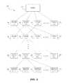 FIG. 2 is a block diagram showing an embodiment of themesh network22 ofFIG. 1, shown in a hierarchical configuration. Although themesh network22 may typically be distributed throughout a geographical region, the block diagram ofFIG. 2 shows a hierarchy to emphasize the parent/child relationships among the various components. As illustrated, themesh network22 includes thehost20, a first level ofintermediate nodes34, a second level ofintermediate nodes36, a lowest level ofintermediate nodes38, andmeters40. In some embodiments, theintermediate nodes34,36,38 may include leak detectors for detecting leaks, where communication with thehost20 may include forwarding information up the hierarchy via otherintermediate nodes34,36,38 which may be on the same level or a different level. Theintermediate nodes34,36,38 may be configured as stand-alone devices for assisting in the transfer of data between thehost20 and leak detectors (or meters40). Theintermediate nodes34,36,38 may also include a combination of leak detectors and stand-alone devices. Themesh network22 may include any number of levels X of intermediate nodes between thehost20 and themeters40.