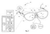Example implementations of theapparatus100 may include eyeglasses, helmets, headsets, diadems, caps, hats, or other types of headwear. While examples of specific implementations (e.g., in eyeglasses) and/or technologies (e.g., optical, capacitive, audio, or piezoelectric sensors, wireless communications, etc.) may be employed herein, these examples are presented merely to provide a readily comprehensible perspective from which the more generalized devices, methods, etc. described herein may be understood.
