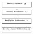 In thestep100, information is monitored. In some embodiments, all information or only some information (e.g., a subset less than all of the information) is monitored. In some embodiments, only explicitly selected information is monitored. In some embodiments, although all information is monitored, only some information (e.g., information deemed to be fact-based) is fact checked.