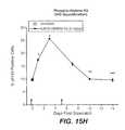 FIGS. 15A-15I provide graphs and pictograms demonstrating that the anti-tumor activity of exemplary anti-huLRRC15 ADC huM25-vcMMAE-E2 against huLRRC15 stromal(+)/cancer(−) tumors is mediated at least in part by a bystander killing effect. Also shown is a representative IHC picture illustrating LRRC15 expression on stromal cells for this xenograft model.FIG. 15A depicts the timing for removal of tumors for ex vivo analysis.FIGS. 15B-15E depict ex vivo flow cytometry data of EBC-1 tumors treated with huM25-vcMMAE-E2 or huM25-mcMMAF-E2:FIG. 15B shows EPCAM expression;FIG. 15C shows FAP expression;FIG. 15D shows CD11c expression; andFIG. 15E shows F4/80 expression.FIG. 15F depicts microscopic analysis of ex vivo EBC-1 tumors treated with huM25-vcMMAE-E2.FIG. 15G depicts immunohistochemical (IHC) staining of EBC-1 tumors showing LRRC15 expression in untreated tumors (left of dashed line), or phospho-histone-H3 (pHH3) staining of untreated tumors or tumors treated with 6 mg/kg of either isotype-vcMMAE-E2 or huM25-vcMMAE-E2 (right of dashed line).FIG. 15H shows quantitated immunohistochemical analysis of percentage phospho-histone-H3 (% pHH3) positive cells vs. days post sizematch in untreated EBC-1 tumors or tumors treated with 6 mg/kg huM25-vcMMAE-E2.FIG. 15I shows expression of CD45 (left) or F4/80 (right) by staining of EBC-1 tumors after 11 days post-treatment with 6 mg/kg of isotype-vcMMAE-E2 (top panels) or huM25-vcMMAE-E2 (bottom panels).