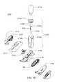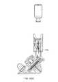 Referring now toFIG. 205, one embodiment of the system includes a combination charger, disposable fill andintegrity verification station2900. Thecharger station2900 includes acharging section2902 for a reusable assembly, acharging section2904 for a remote control device, and aweight scale2906. Theweight scale2906 in some embodiments may be sized to accommodate adisposable assembly2908. In the exemplary embodiment, the station also includes afill adapter septum2910 that accepts a filling cap2912 (including a filling needle for piercing the septum2910). In some embodiments, the filling needle is attached to afluid line2914 which may be a flexible tubing of a predetermined length suitable for reaching around thestation2900 to, in some embodiments, a fluid vial orfluid container holder2916. Thecontainer holder2916 may be sized to accommodate afluid vial2918. In addition to the features shown inFIG. 205, in some embodiments, thestation2900 may include a pump for pumping the fluid from thecontainer2918 into thedisposable assembly2908. In some embodiments, the pump may be a peristaltic pump. However, in other embodiments, the pump may be a diaphragm pump or any of pump known in the art. The pump may be used to automatically fill the reservoir in the disposable2908. In some embodiment, a user attaches the container cap2920 (including a needle) to thefluid container2918 as well as thefilling cap2912 to thefill adapter septum2910. The pump evacuates air from the disposable and uses it to pressurize the vial. The pump then pulls fluid from thecontainer2918 and fills the disposable2908 reservoir. Also, whilst filling the reservoir, the system may provide enough positive pressure to additionally prime the fluid path and the cannula of the disposable.