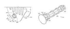 FIGS. 200 and 201 are first and second perspective views of thestem2713, which can include alower stem portion2714 and theupper stem portion2716. Thestem2713 can be a single component or it can comprise multiple separate pieces, e.g., thelower stem portion2714 and theupper stem portion2716, that can be interconnected. Thelower stem portion2714 includes a cranedbody2908 having alower section2910, amiddle section2912, and anupper section2914, a first snap lock2916 (e.g., a button snap), and a second snap lock2918 (e.g., a button snap). The cranedbody2908 is a hollow tubular component that extends from afirst end2920 at thelower section2910 to asecond end2922 at theupper section2914. The cranedbody2908 generally curves upward from thelower section2910 to theupper section2914. Thelower section2910 and theupper section2914 each include a through-hole2924,2926 generally adjacent thefirst end2920 and thesecond end2922, respectively. Themiddle section2912 also includes a through-hole2928 generally at the center thereof. The first andsecond snap locks2916,2918 can be leaf springs that can be respectively positioned within the first andsecond ends2920,2922 of the cranedbody2908. Thefirst snap lock2916 can include first and secondoutward protrusions2930a,2930bthat can be engaged with and extend out from the through-hole2924 when thefirst snap lock2916 is positioned within thefirst end2920 of the cranedbody2908. Similarly, thesecond snap lock2918 can include first and secondoutward protrusions2932a,2932bthat can be engaged with and extend out from the through-hole2926 when thesecond snap lock2918 is positioned within thesecond end2922 of the cranedbody2908. The first andsecond snap locks2916,2918 can be compressed by applying pressure to the respectiveoutward protrusions2930a,2930b,2932a,2932bthereof. Upon release of the pressure, the first andsecond snap locks2916,2918 will return to their original positions with theoutward protrusions2930a,2930b,2932a,2932bextending out from the through-holes2924,2926.