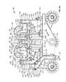 In some embodiments of the present disclosure, the housing can include an opening and the first roller drive gear train can include a first drive gear. In such embodiments, a gear of the first gear stack can extend out from the opening in the housing and drive rotation of the first drive gear of the first roller drive gear train, and a gear of the second gear stack can extend out from the opening in the housing and drive rotation of a second drive gear of the second roller drive gear train.