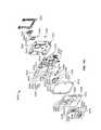 FIGS. 202-207 show thehandle assembly2718 of the present disclosure in greater detail. Particularly,FIGS. 202-207 are perspective, exploded, front, rear, side, and top views of thehandle assembly2718, respectively. Thehandle assembly2718 includes afront shell2956, arear shell2958, and a plurality ofscrews2960. Thefront shell2956 includes a frontbottom support half2962, first and second front side supportshalves2964,2966, a fronttop handle half2968, afront tray2970, and a firstrear support wall2972. The first and second front side supportshalves2964,2966 extend upwardly from opposite sides of the frontbottom support half2962 and connect with the fronttop handle half2968, which is tilted slightly forward from the first and second frontside support halves2964,2966. The frontbottom support half2962, first and second frontside support halves2964,2966, and fronttop handle half2968 define awindow2974. Thefront tray2970 extends rearward from the frontbottom support half2962. The firstrear support wall2972 includes first and secondflexible locking tabs2976a,2976band extends upward from the end of thefront tray2970 spaced from the frontbottom support half2962.