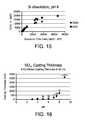 FIG. 16 is a plot of the SiOxcoating thickness necessary initially to leave a 30 nm residual coating thickness when stored with solutions at different nominal pH values from 3 to 9.