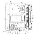 3) an internal battery pack410 (shown in simplified form in hidden line drawing inFIG. 12) disposed within theinterior6 of theventilator housing4, and