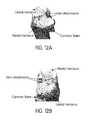 FIG. 12B is a perspective view of the computer model of the knee joint ofFIG. 12A with anterior and posterior horn attachments of the menisci represented with one fiber each and one fiber representing the coronary ligament constraining the lateral meniscus to the tibia/fibula;