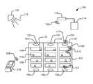 In a further example, thesystem100 can also include ahandheld device126. In an example, thehandheld device126 can transmit advertising or beacon signals that can be received by the antenna arrays and aspects of the handheld device beacon signal can be communicated to thereader114 orcentral server116 by the rack-based observer device. Alternatively, when the antenna arrays broadcast advertising or beacon signals, thehandheld device126 can receivebeacon signals112 or113 from the rack-basedantenna arrays104 or106 and can communicate identifiers, data, or characteristics of thesignals112 or113 to thereader114 usingsignal128. Thereader114 can communicate the data and signal characteristics to thecentral server116, which can determine a proximity of thereader126 to a selected rack. Alternatively, the handheld device can form a network with the rack-based observer device. In either case, thecentral server116, through thereader114, can communicate with thehandheld device126, providing instructions to signal when the handheld device is proximal to the desiredrack102. Optionally, thehandheld device126 further includes an infrared receiver to receive theinfrared beacon signal124. Identifiers or data from theinfrared beacon signal124 received at thehandheld device126 can be further communicated to thereader114 and to thecentral server116. In an example, thehandheld device126 can communicate with thereader114 and thecentral server116 to assist in finding a desiredrack102 and desired tag. Once thehandheld device126 is proximal to the desiredrack102, thehandheld device126 can provide a request to thecentral server116 through thereader114 to command atag110 to indicate its presence through sound or a light indicator. Thesignal128 can be similar to the communication signals122, or can include data or identifiers similar to that of thetags110 or may include additional commands, requests, or information.