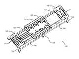 The plurality of left projections may mirror the plurality of right projections as illustrated in the various embodiments shown in the figures. The plurality of left projections and the plurality of right projections may extend outwardly from a central portion of the carriage as illustrated inFIGS. 1, 2, 4 and 9A-9F of the drawings. Alternatively, the plurality of left projections may extend inwardly from a left perimeter portion of the carriage and the plurality of right projections extend inwardly from a right perimeter portion of the carriage. The left projections may connect to both the left perimeter portion and the central portion of the carriage with openings between each of the left projections. The right projections may connect to both the right perimeter portion and the central portion of the carriage with openings between each of the right projections.