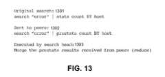 FIG. 13 illustrates an example of a search query received from a client that the search head can split into two parts in accordance with the disclosed embodiments.
