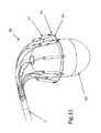 FIGS. 31-34 show embodiments wherein loop arrangement and/orimplant positioning device18 comprises aninflatable balloon82. The figures show exemplary balloons82 useful for a) makingsure support arms20 are fully expanded before deployingimplant10, b) make sure thatloop14 is concentric with the valve annulus prior to implantation, and c) facilitating an interference step or backing against which to press to be used for pressingimplant positioning device18 andimplant10 onto the valve annulus before implantation as illustrated inFIG. 34.FIG. 31 illustrates anoval balloon82;FIGS. 32-34 illustrate a droplet-shaped orbulbous balloon82.