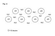 FIG. 11 illustrates an example schematic of oil droplets encompassing an API with water surrounding the oil droplets.