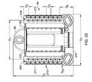 FIG. 25 is a front view of the wall mountable connector with the door in the open position, indicating relative terminal positions in a sixteen terminal wall mountable connector;