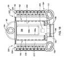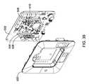 FIG. 28 provides an enlarged view of thelead frame248 visible inFIG. 22. Thelead frame248 may be considered as including anR leg300, an RCleg302 and aU leg304. Thelead frame248 includes a central mountingportion306 which may be secured to theback housing portion180b. TheR leg300 may be considered as radiating outward from the central mountingportion306. The RCleg302 may be considered as radiating outward from the central mountingportion306. TheU leg304 may be considered as radiating outward from the central mountingportion306.