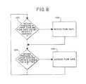 At thenext decision step206, the controller evaluates the state of the second timer or counter. If the second counter is not set to zero (e.g., it is set at 1 or more) the timer or counter is running and the condition is satisfied. For the illustrated embodiment employing the second counter, the controller adds an incremental count at processingstep208 to the second counter. The controller then proceeds todecision step210. Atdecision step210, the controller evaluates whether the second selected amount of time has elapsed. Where a counter is used, this is indicated by the number of accumulated counts, which are indicative of an amount of time. More specifically, the controller cycles though the process at a selected frequency, which may be fixed or variable, as discussed above. For example, if the controller cycles through the process at 10 times per second, an accumulation of 51 counts means that about 5 seconds (50 counts) has passed since a prior decrease of the fluid flow rate (at which time the first counter was set to “1” in processing step204). The number of counts used in the second counter may be selected as desired relative to the chosen cycle frequency to reflect the first time period from the ranges of time periods described above—for example, the use of 100 counts at a frequency of 10 times per second, would be reflect a period of 10 seconds, but 20 counts would be 2 seconds. The cycle time or rate for the processor could of course be other than 10 times per second as used in the illustrated embodiment. If the selected number of counts representing the desired time period have not accumulated on the second counter, the processor proceeds directly to thenext decision step214. If the selected number of counts representative of the first time period discussed earlier, such as 50 counts for 5 seconds or 100 counts for 10 seconds (at a cycle frequency of 10 times per second), have accumulated, the answer is “Yes,” and the processor resets the second counter to zero at processingstep212, which prepares or conditions the second counter for another possible decrease in return fluid flow rate when the system cycles throughdecision step200 again.