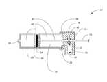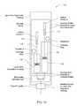 Thereference volume assembly28 includes areference volume35. Thereference volume35 may have a small laser drilled hole to the ambient air to allow air to fill thereference volume35 as thepiston30 moves. Thereference volume assembly28 also includes aspeaker36, areference microphone37, and avariable volume microphone38. Thespeaker36 generates the sound wave that is applied to thereference volume35. The term “sound wave” may include waves at a human perceptible frequency, a frequency not perceptible by a human, a frequency not perceptible by a living organism, ultrasonic frequencies, acoustic frequencies, or other frequency of mechanical vibration. The sound wave travels through anacoustic port39 into thevariable volume40. Thereference microphone37 senses the sound wave within thereference volume35 and the variable-volume microphone38 senses the sound wave within thevariable volume40. A processor, e.g., theprocessor21 ofFIG. 2, is in operative communication with thespeaker36, and the reference andvariable volume microphones37 and38. Theprocessor21 instructs thespeaker36 to generate a plurality of acoustic frequencies and measures the magnitude and/or phase of the sound wave sensed by thereference microphone37 and the variable-volume microphone38. The acoustic response can be correlated with the volume of thevariable volume40, e.g., the resonance frequency may be correlated with the volume of thevariable volume40. The processor may subtract: (1) the volume of the variable volume40 (as measured from the acoustic response), (2) the volume displaced by thepiston30, and (3) the volume of the shaft located within thereservoir29 from the predetermined total volume of thereservoir29 to estimate the volume of the liquid31 remaining in theliquid side31 of thereservoir29.