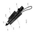 Alternatively, in some variations, the opening at the distal end (distally-facing opening) into the channel within the jaw member housing the tissue penetrator is still present, but is adapted to reduce the likelihood of a suture re-entering the channel. This may be achieved by having a very narrow channel (e.g., having a diameter approximately the same as or just slightly larger than the diameter of the suture); the outer edge of the channel may transition abruptly from a smooth or rounded distal-facing surface, which does not guide a suture into the channel. This very narrow channel at the tip of the lower jaw may therefore allow the suture to escape when the suture is intension1601, but would be narrow enough to make it difficult for the suture to enter the lower jaw channel when the lower jaw is pushed against the suture.