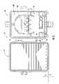 In some exemplary embodiments, anauxiliary cover130 may be provided inNID10. Theauxiliary cover130 may be disposed in the interior26 and removably connected to one of theinsert50,base22, or cover24, such as in exemplary embodiments theinsert50 as shown.Auxiliary cover130 generally restricts access to theprovider section58 and protects bare optical fiber therein. For example, when connected to theinsert50,base22, or cover24, theauxiliary cover130 may preventprovider section58 access (i.e. through the auxiliary cover130) andpermit subscriber section56 access. In exemplary embodiments, theauxiliary cover130 may be connected to theinsert50. For example, apost132 may extend from theinsert50, such from thebase plate52 thereof.Post132 may, for example, extend generally along the transverse axis16 and in theprovider side56. Abolt134 or other suitable mounting hardware may be inserted through theauxiliary cover130 and connected to thepost132 to removably connect theauxiliary cover130 to theinsert50.