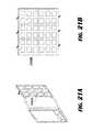 FIG. 21B illustrates hardware in the form of a printed film or flexible printed circuit board (PCB) which may include a plurality of printedreceivers2102B. Printed film can be pasted or otherwise attached to electronic devices and can connect trough suitable interfaces such as USB. Printed film may he advantageous in that sections can be cut from it to meet specific electronic device sizes and/or requirements. The efficiency of wireless power transmission as well as the amount of power that can be delivered (using pocket-forming) may be a function of the total number of antenna elements used in a given receiver and transmitter system. For example, for delivering about one watt at about 15 feet, a receiver may include about 80 antenna elements while a transmitter may include about 256 antenna elements. Another identical wireless power transmission system (about 1 watt, at about 15 feet) may include a receiver with about 40 antenna elements, and a transmitter with about 512 antenna elements. Reducing in half the number of antenna elements in a receiver may require doubling the number of antenna elements in a transmitter. In some cases, it may be cost-effective to put a greater number of antenna elements in a transmitter than in a receiver. However, the opposite can be achieved by placing more antenna elements on a receiver than on a transmitter, as long as there are at least two antenna elements in a transmitter.