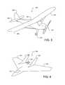 FIG. 4 shows an example of anaircraft350 with a propeller in a pusher configuration. The term “pusher” refers to the fact that thepropulsion unit358 is mounted at the back of the aircraft and “pushes” the vehicle forward, in contrast to the propulsion unit being mounted at the front of the aircraft. Similar to the description provided forFIG. 3,FIG. 4 depicts common structures used in the pusher plane: afuselage352, twohorizontal wings354,vertical stabilizers356, and apropulsion unit358, which can include a motor, shaft, and propeller.
