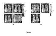 FIG. 11 shows BLI image of mice at 24 hrs post IT spray application. (A) Mice with fur removed (modified FFL mRNA in C12-200 based NPs). (B) Mice with fur intact (modified FFL mRNA in C12-200 based NPs).