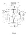 As explained above, each of the poppet valves CV1-CV4 is biased into a closed position by its biasingassembly884. Each of the poppet valves CV1-CV4 includes the cam follower883 (seeFIGS. 10C and 10E) that abuts thecam850. As thecam850 rotates, it pushes opposing ones of the poppet valves CV1-CV4 outwardly opening them. If the poppet valves CV1 and CV3 are in open positions, the poppet valves CV2 and CV4 are in closed positions and vice versa. Referring toFIG. 7B, the first rotary valve assembly306 (e.g., the stepper motor833) is configured to receive acontrol signal376 from thecontrol system220 encoding a cam position. The first rotary valve assembly306 (e.g., the stepper motor833) is also configured to rotate thecam850 to the position encoded in thecontrol signal376.