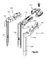With reference toFIGS. 121-124, The third,central arm1120 is loosely fitted to thecentral body1102. A rack andpinion mechanism1121 can be substantially similar to the rack andpinion mechanism272 shown inFIG. 4 and is configured to movecentral arm1120 longitudinally along axis1103 (FIG. 99) between a distal position and a proximal position. Thus, the rack andpinion mechanism1121 can retract theblade1117cattached to thecentral arm1120. Thecentral arm1120 is slidably connected to thecentral body1102. The rack andpinion mechanism1121 includes a geared rotating member orpinion1199 andrack1197 arranged on aninner surface1195 of thecentral arm1120. The rotatingmember1199 has a teeth adapted to mate with the teeth of therack1197. When therotation member1199 is turned, its teeth engage the teeth of therack1197, causing thecentral arm1120 to move longitudinally along the axis1103 (FIG. 99) with respect to thecentral body1102.