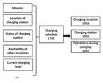 In some embodiments, the autonomous data machines may determine anoptimum charging schedule1701. The optimum charging schedule may depend on the mission of the autonomous data machines, availability of other autonomous data machines, placement of charging stations, availability of the charging station, or any other factors. The optimum charging schedule may include decisions including when to charge, where to charge1705, thecharging time1703, and operations may be performed during charging1707, etc. In some cases, the charging decision may be made when the current charging level is lower than a threshold (e.g., 75% retaining power), or not sufficient for the upcoming missions. In other cases, the autonomous data machine may decide to charge according to the locations of the charging stations even the current charging level is higher than the threshold. For example, if a charging station is available along a patrol path and the current charging power is still sufficient, the autonomous data machine may charge at the station for a short period of time to maintain high charging power. The autonomous data machine may determine the charging time based on the location of the charging stations, availability of the charging station, availability of other autonomous data machines in operation, power requirement, and other factors. For example, if many charging stations are provided at different points throughout the location, the autonomous data machines may charge for shorter periods of time, because the likelihood that a charging station will be nearby and available may be increased. By contrast if fewer charge stations are provided and are only at a particular location, the autonomous data machines may charge for longer since they will likely be traveling a longer path during which fewer charging stations may be available. The length of charge may depend on availability of other machines to take the charging machine's place. For example, if a particular region is to undergo continuous surveillance, an autonomous data machine may charge for a longer period of time if other machines are available to patrol that particular region. If fewer machines are available, the autonomous data may charge for a shorter period of time, to patrol the region until other machines can come over and take its place.
