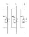 FIGS. 4-6 are enlarged cross-sectional views of the subject ofFIG. 3, in three different positions illustrating the unlocked and locked condition of the panels.