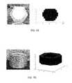 Atstep1005 multiple frames are combined to create a 3D image of the object (“3D Image Construction”) as discussed hereinabove. This involves the steps of identifying the center of gravity of the object in each frame (“center of gravity”) and using the center of gravity in adjacent frames to align those frames (“3D object alignment”). When the distance between the centers of gravity in adjacent frames is within a defined tolerance level, e.g., 5 mm, the frames are stacked with their centers of gravity aligned one above the other. When the distance between the centers of gravity in adjacent frames is above the defined tolerance, it is understood that the object is not perpendicular to the 2D planes of the frames and the adjacent frames are stacked accordingly. In certain cases, pixels from some reconstructed frames extend beyond the 3D domain. In such cases, these outlying pixels are translated to the nearest edge of the 3D domain (“Object transition”), as explained hereinbelow with reference toFIGS. 71-73.