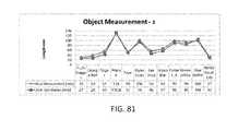 FIGS. 79-81 are illustrations showing measurement of errors by a proximity sensor, for a plurality of different objects, in accordance with an embodiment of the present invention.FIGS. 79-81 show the difference between object size measured by a proximity sensor and the actual object size, for a plurality of different objects.FIGS. 79-81 demonstrate the accuracy of using a linear model for sub-pixel calculations.FIGS. 79-81 compare (i) the sizes of various objects measured by a proximity sensor of the present invention using linear interpolation with (ii) the object's actual size.FIG. 79 shows calculated lengths (x-axis) for many objects and the corresponding actual lengths of the objects. For all objects except the tape shown inFIG. 70 the calculated length matched the actual length. The tape shown inFIG. 70 has a glossy surface curved along the x-axis, which disturbs the reflection signals compared to reflections off a non-glossy object. This is why the calculated length was not accurate.FIG. 80 shows calculated widths (y-axis) for many objects and the corresponding actual widths of the objects. For all objects except the tape shown inFIG. 70 the calculated width matched the actual width. In this case too, the highly reflective surface, curved along the y-axis caused an incorrect width calculation.FIG. 81 shows calculated heights (z-axis) for many objects and the corresponding actual heights of the objects. For all objects the calculated height matched the actual height. Although the tape shown inFIG. 70 is glossy, it is not curved in the z-axis and therefore the height calculation is not distorted.