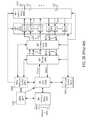 FIG. 5I is an exemplary block diagram of an embodiment of a Complex Sliding Correlator Block (CSCB). In one embodiment, two slidingcorrelators5H-10A and5H-10B are used with a single complex valued input, but with different codes including a pilot channel based upon a in-phase and quadrature set of Walsh codes (for example, W0 and W1), and a data channel having two other Walsh codes (for example, W2 and W3), wherein the set of Walsh codes is chip by chip covered by a gold code to form Sequence Set j (SSj). Two of the codes within SSj, denoted as S1 and S2 (for Pilot I and Q, and respectively including W0 and W1) are provided toSC5H-10A, and the the other two codes, denoted as S3 and S4 are provided toSC5H-10B (for the data channel). The complex output of the two sliding correlators (SCs) are provided as respective outputs, as well as respectively squaring them (utilizing blocks5I-20 and5I-30) to determine the magnitude squared of each, which are then summed together at5I-40 for use in the detection hypothesis of Eq. 5-1 (as Mag^2 or alternatively as Mag via SQRT—square root—block5I-20). The Mag^2 produced by block5I-30 provides a value proportional to the power term “P” required by EQ. 5-1. Compensation for the proportionality may be made by adjusting the THDETALERTvalue appropriately to compensate for any impedance value of the Mag^2 measurement, relative to a value required for an exact power measurement. In alternative embodiments, for instance, where the S(0) provides the phase reference and S(1) provides the data values (as described associated withFIG. 5F Row B for example) the code sequence set (SS(j)) is composed of only two codes, one for each of the two sliding correlators. The sliding correlators, in this embodiment are correlating an incoming complex signal with a single real code (each of which includes two real FIR filters for performing correlations in this embodiment.)