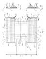 FIGS. 7A and 7B are a front end-view and a back end-view, respectively, of thebonder apparatus200. As illustrated inFIGS. 7A and 7B, asupport drum232 may substantially surround the centrallongitudinal axis204. Thesupport drum232 includes aninternal drum surface234 and anexternal drum surface236, which is opposite theinternal drum surface234. Theexternal drum surface236 supports a portion of each of the plurality ofmanifolds202. The plurality ofmanifolds202 are disposed about theexternal drum surface234 and are positioned radially about theexternal drum surface234 such that the plurality ofmanifolds202 substantially surround the centrallongitudinal axis204. Thesupport drum232 is configured to rotate about the centrallongitudinal axis204. The plurality ofmanifolds202 and thesupport drum232 are configured to rotate together about the centrallongitudinal axis204. In some embodiments, thebonder apparatus200 may include greater than about 4 manifolds or greater than about 6 manifolds or greater than about 10 manifolds or greater than about 25 manifolds or greater than about 50 manifolds positioned radially about the centrallongitudinal axis204.