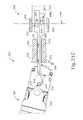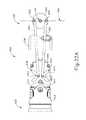 Movement of arms (242,240) as seen inFIG. 19B causes first cam member (230) to rotate counter clockwise about pivot axis (280). As first cam member (230) rotates, two actions occur in a generally simultaneous manner. First cam teeth (233) have a rounded triangular shape that urges lock bar (262) proximally away from end effector (212) through a camming action as a result of first cam teeth (233) engaging angled sides (281). Again, teeth (233) may have a variety of different shapes other than triangular. Spring (264) compresses to accommodate proximal motion of lock bar (262). As a result, rounded tip (285) moves proximally sufficient to traverse parallel sides (283). Additionally, cam wings (238,239) rotate counter clockwise with first cam member (230). As a result of the rotation, cam wing (239) removes gap (261) between boss (273) and engages boss (273). Meanwhile, cam wing (238) moves rotationally away from boss (271). It will be understood that while first cam member (230) and lock bar (262) have moved in response to the movement of arms (242,240) during the transition from the configuration shown inFIG. 19A to the configuration shown inFIG. 19B, second cam member (231) and accordingly end effector (212) have not yet moved. Thus, end effector (212) remains in a straight orientation at this stage.