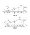 FIG. 8 is a cross-sectional view of a tapered interlayer having a tapered zone that extends over the entire width of the interlayer, where the tapered includes three constant angle zones spaced from one another by two variable angle zones;