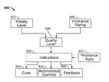 Turning now toFIG. 5, amethod500 of applying thehindrance405 to select or generateinstructions502 is generally shown and illustrated.Hindrance405, and more specifically, in various embodiments,hindrance rating406 is combined with a user-adjustable fidelity level501 to determine a quality of presentation. Thefidelity level501 corresponds to a desired degree of assistance. For example, a fidelity level of 1 may correspond to zero desired assistance, no matter how serious the problem. A fidelity level of 5 may correspond to a maximum degree of desired assistance.