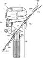 Thetrocar cannula102 extends distally from thehousing104, and is also generally defined by asidewall118 that extends circumferentially around the central longitudinal axis L. A diameter of thecannula102 is generally smaller than a diameter of thehousing104. Further, thetrocar cannula102 can define aninterior lumen120 with an openproximal end portion102pand an opendistal end portion102d. As shown by way ofFIGS. 2A and 2C, theproximal end portion102pcan extend into and be mounted in thedistal end portion104dof thetrocar housing104, thus defining a workingchannel122 of thesurgical access device100 that extends from theproximal end portion104pto the opendistal end portion102dof thecannula102. As a result, thehousing104 is in fluid communication with theinterior lumen120 of thetrocar cannula102. Further, aninsufflation port124 can be associated with thehousing104, as shown thedistal chamber portion107, to control the flow of an insufflation fluid or gas, e.g., carbon dioxide, to a surgical site. More particularly, theinsufflation port124 can include astop cock valve126 and acock valve lever128, which can work together to allow and/or prevent passage of an insufflation fluid or gas through flexible tubing into a portion of thetrocar housing104 and thetrocar cannula102.