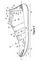 In some embodiments, forward knittedcomponent150 may include a plurality of zones that have one or more different physical properties. Boundaries of these zones are indicated by broken lines in the illustrated embodiments. For example, as most clearly illustrated inFIGS. 3 and 6, forward knittedcomponent150 can include afirst zone214, asecond zone216, and athird zone218. As shown in the illustrated embodiments,third zone218 can be U-shaped and substantially centered betweenmedial portion202 andlateral portion204, adjacent secondperipheral edge209. Accordingly, aninternal boundary163 ofthird zone218 can be located approximately a uniform distance spaced apart from secondperipheral edge209 so as to be substantially concentric with secondperipheral edge209 as shown in the plan view ofFIG. 6. Also,second zone216 can extend forward longitudinally fromthird zone218 towardforward portion200, andsecond zone216 can include amedial branch219 that extends betweenforward portion200 andmedial portion202. Afirst portion221 offirst zone214 extends betweenthird zone218, firstrear edge210,peripheral edge208, andsecond zone216. Asecond portion223 offirst zone214 extends betweenthird zone218, secondrear edge212,peripheral edge208, andsecond zone216.